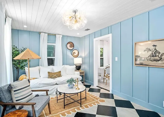 **Welcome to Idle Wild, an oasis of comfort nestled in the heart of Fredericksburg.** This charming retreat perfectly balances modern amenities with rustic appeal, creating a serene getaway for travelers seeking relaxation and adventure. Just a scenic drive from San Antonio International Airport, approximately 100 km away, Idle Wild invites you to unwind and savor its tranquil surroundings.